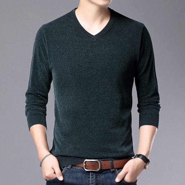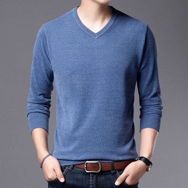 The Comfort Blend V-neck Long-Sleeved Shirt is a versatile essential that pairs well with jeans, trousers, or even under a blazer for a more polished look. Embrace comfort without compromising style with this wardrobe staple.
