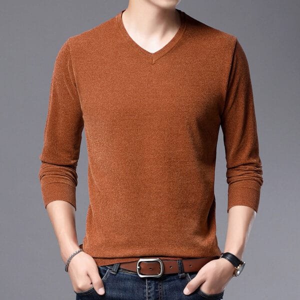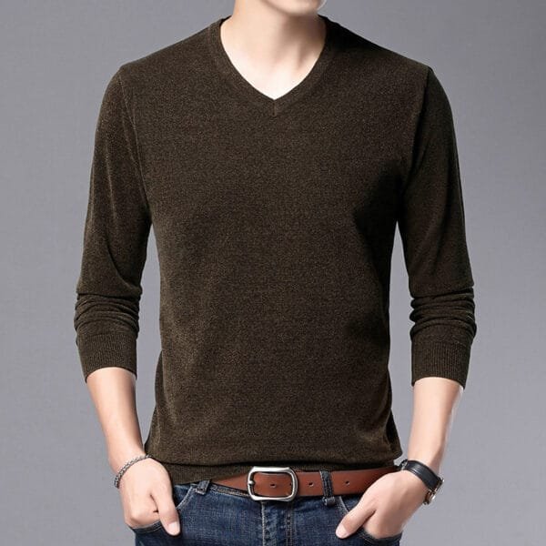 The V-neck design adds a touch of sophistication to this long-sleeved shirt, making it suitable for both casual and semi-formal occasions. The soft and breathable fabric ensures all-day comfort, while the long sleeves provide extra coverage and warmth during cooler weather.