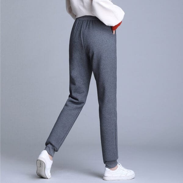 Inside, you’ll discover the luxurious softness of the velvet lining. The plush velvet interior adds a touch of indulgence, providing a cozy and comfortable feel against your skin. The lining also helps to keep you warm during cooler days, making these joggers perfect for year-round wear.