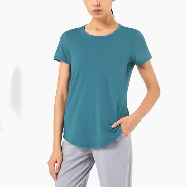 The casual design of this sports shirt makes it perfect for both active and leisurely occasions. The clean and minimalist style ensures it can be easily paired with your favorite leggings, shorts, or joggers. Wear it to the gym, for a yoga session, or simply as a stylish and comfortable option for your everyday activities.