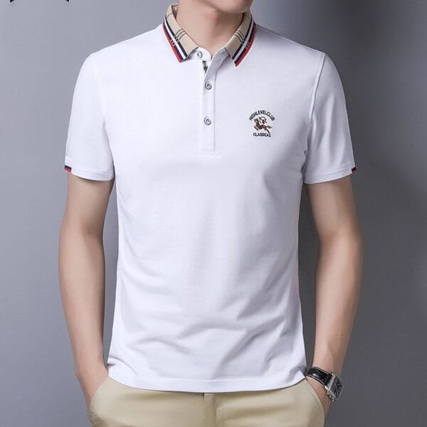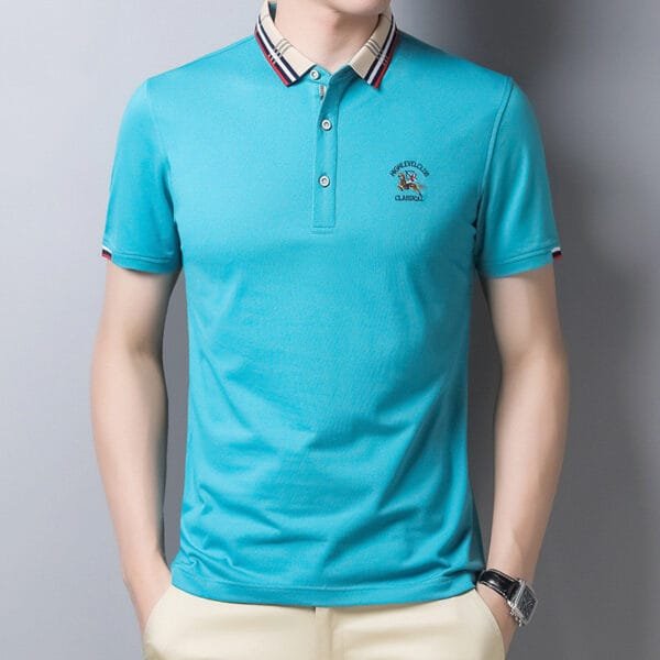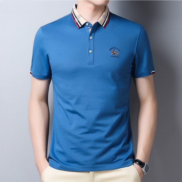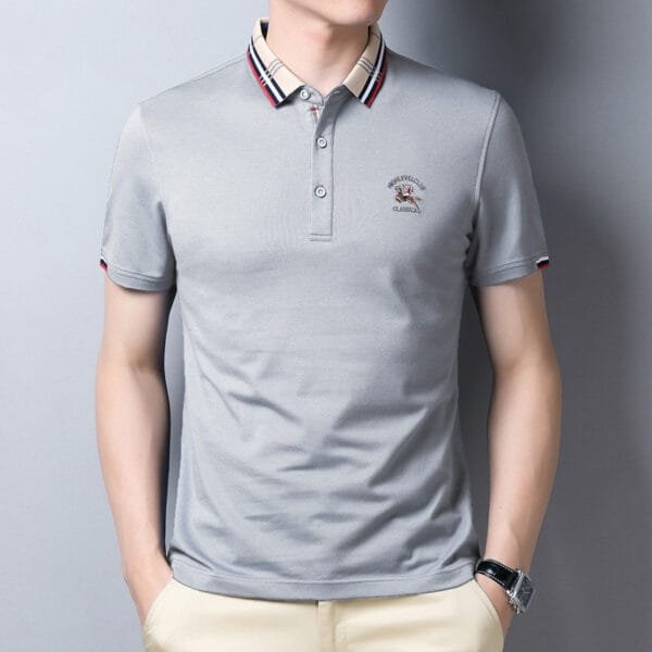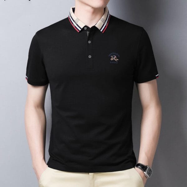 Experience the perfect fusion of style and comfort with our Lapel Collar Solid Casual Embroidered Tee. Crafted with meticulous attention to detail, this tee combines a lapel collar design with subtle embroidery, creating a versatile and fashion-forward look.