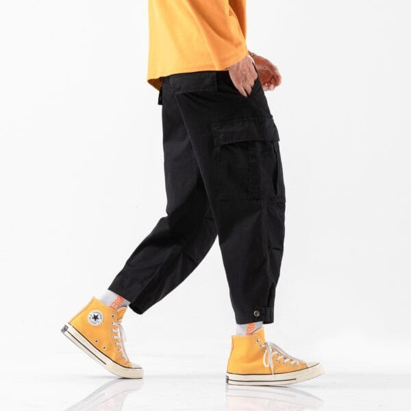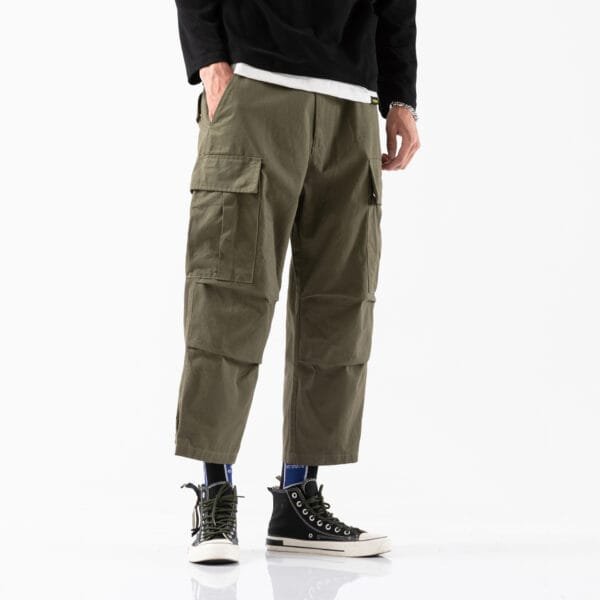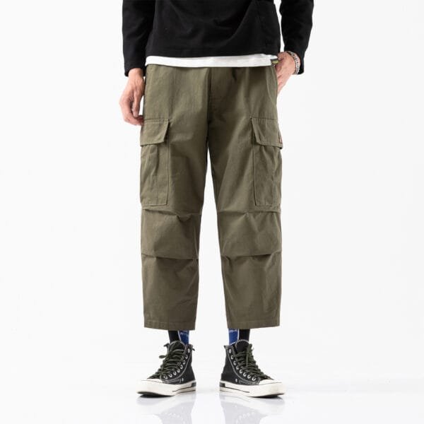 Constructed with quality materials, these pants ensure durability and comfort for all-day wear. The cropped length adds a contemporary touch to your outfit, making them suitable for various occasions. Whether you’re running errands, exploring the city, or simply seeking a stylish yet functional choice, our Multi Pocket Cargo Crop Pants are the perfect addition to your wardrobe.