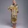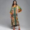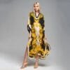 The bohemian influence shines through in the details of this dress. The kaftan-inspired silhouette features wide sleeves and a relaxed fit, creating a sense of freedom and relaxation. The maxi length adds a touch of sophistication, while the vibrant and eclectic patterns and prints reflect the bohemian aesthetic, making each dress a unique expression of style.