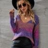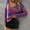 The V-neckline adds a touch of elegance, and the pullover style makes it convenient and effortless to wear, while the vibrant gradient wave design elevates your outfit to new heights. Pair it with your favorite jeans or leggings for a casual yet trendy look, or dress it up with a skirt or trousers for a more sophisticated ensemble.